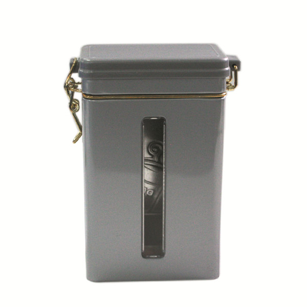 该款开窗密气罐,复合式结构,盖子为塑胶材质,内有硅胶密封圈,通过铁线扣将塑胶盖与罐身相连接;罐身内卷线,扣底结构。该款开窗密气罐外观精致,外面采用四色印刷过光油,内部过透明油的印刷方式,可根据客户的定制要求选择单面或者双面进行四色或者专色印刷,外部可过光油或者哑油,内部可过金油或者透明油。适用于糖果铁罐、茶叶铁罐、咖啡铁罐等包装。