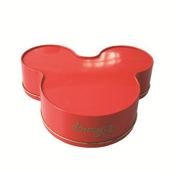 该款迪士尼米奇造形糖果铁盒,三片式结构,盖为外卷线,扣底结构,米奇造型设计;此款铁盒外观精致,外面采用四色印刷过光油,内部过透明油的印刷方式,可根据客户的定制要求选择单面或者双面进行四色或者专色印刷,外部可过光油或者哑油,内部可过金油或者透明油。适用于各类食品等包装。